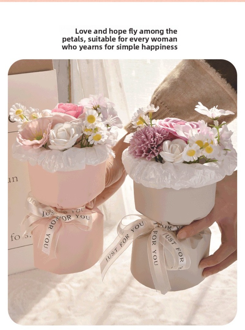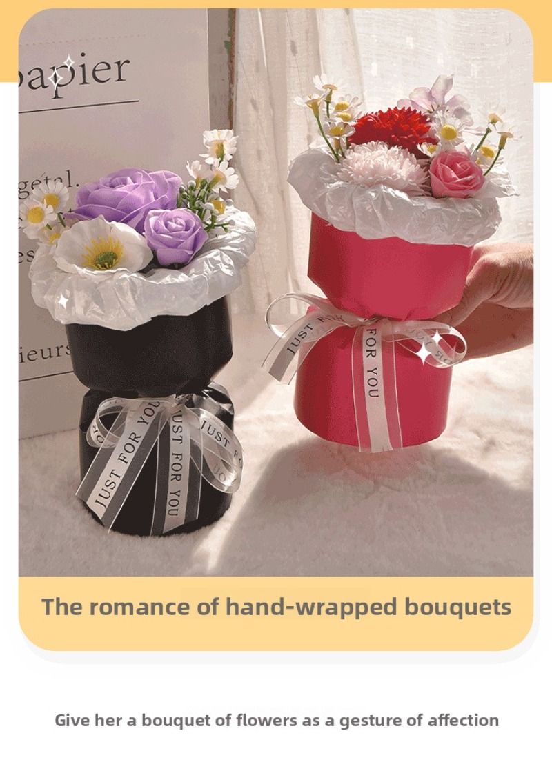 Creative small fragrant wind soap flower gives girlfriend a small surprise, finished product simulation bouquet, round ornament, premium Mother's Day gift.