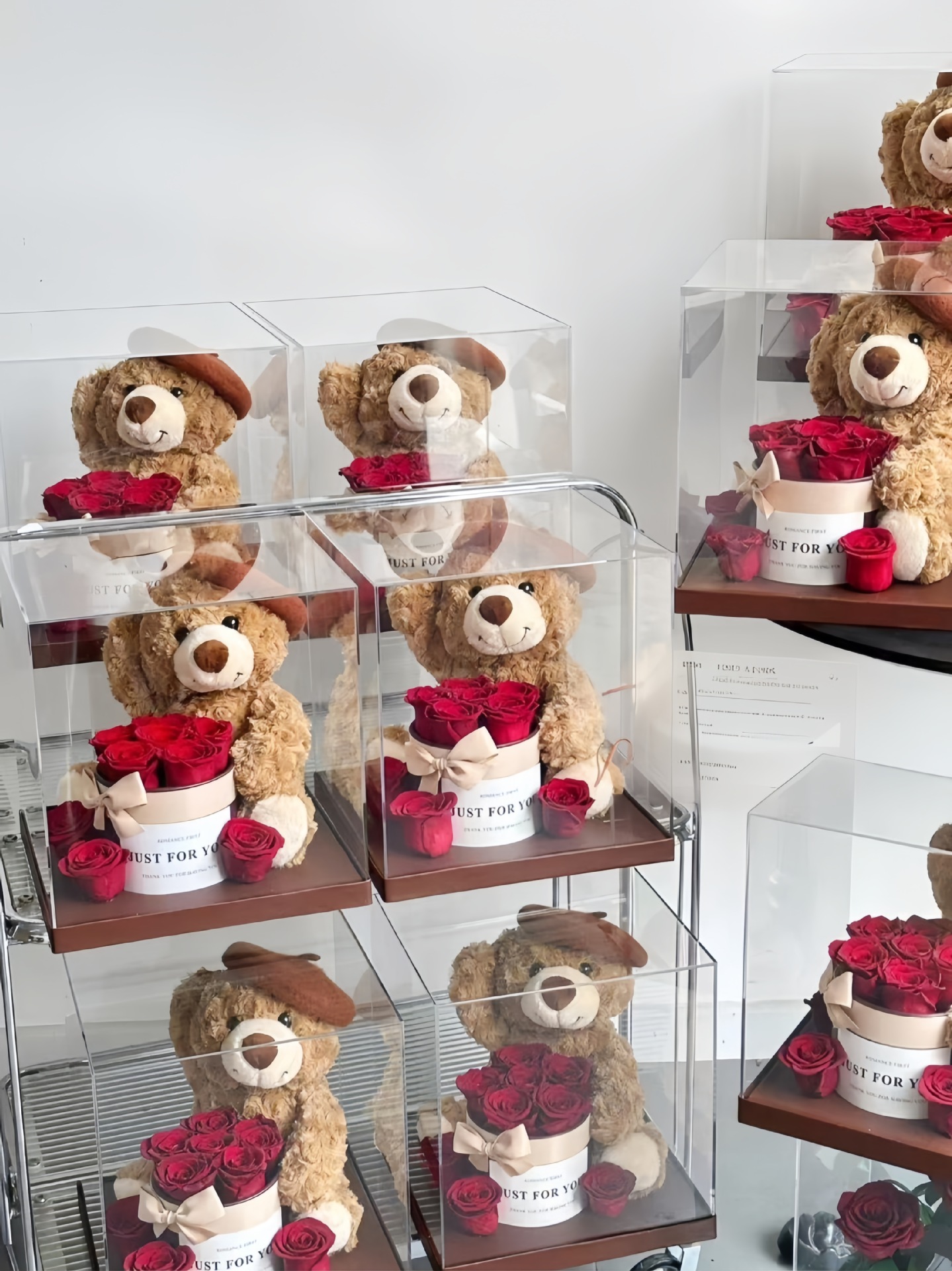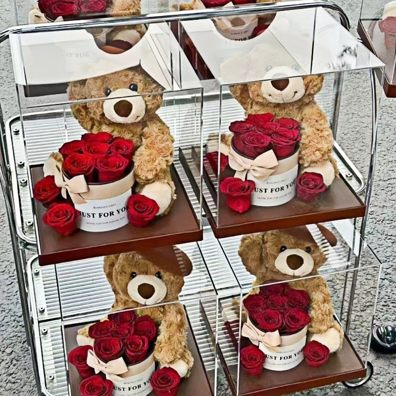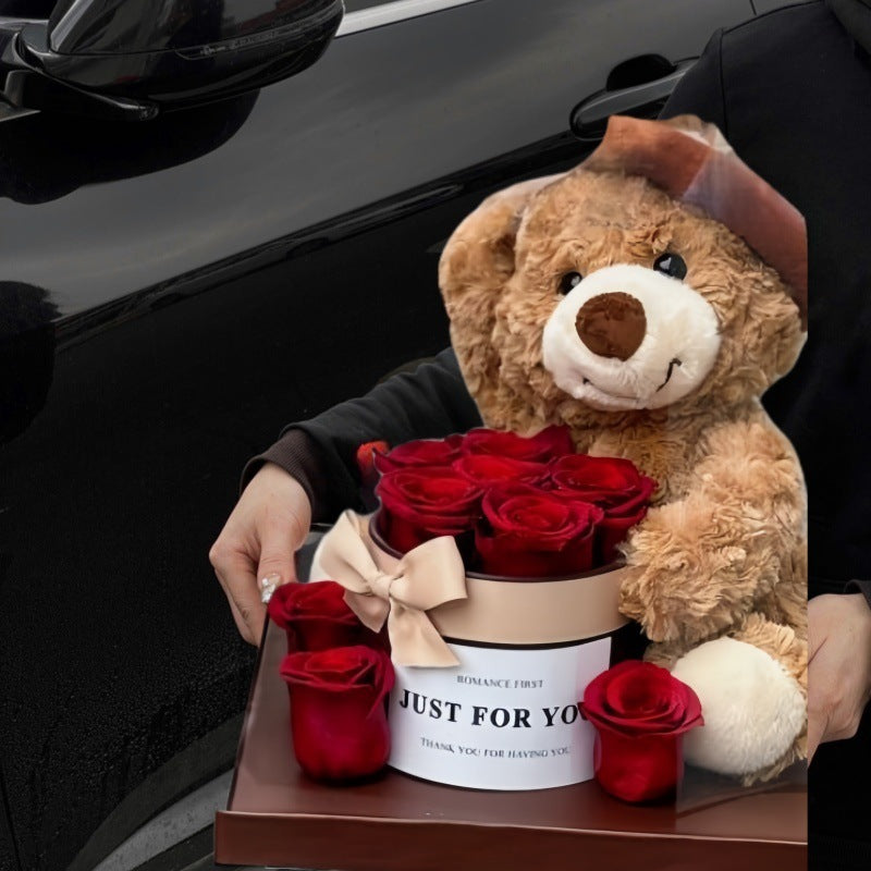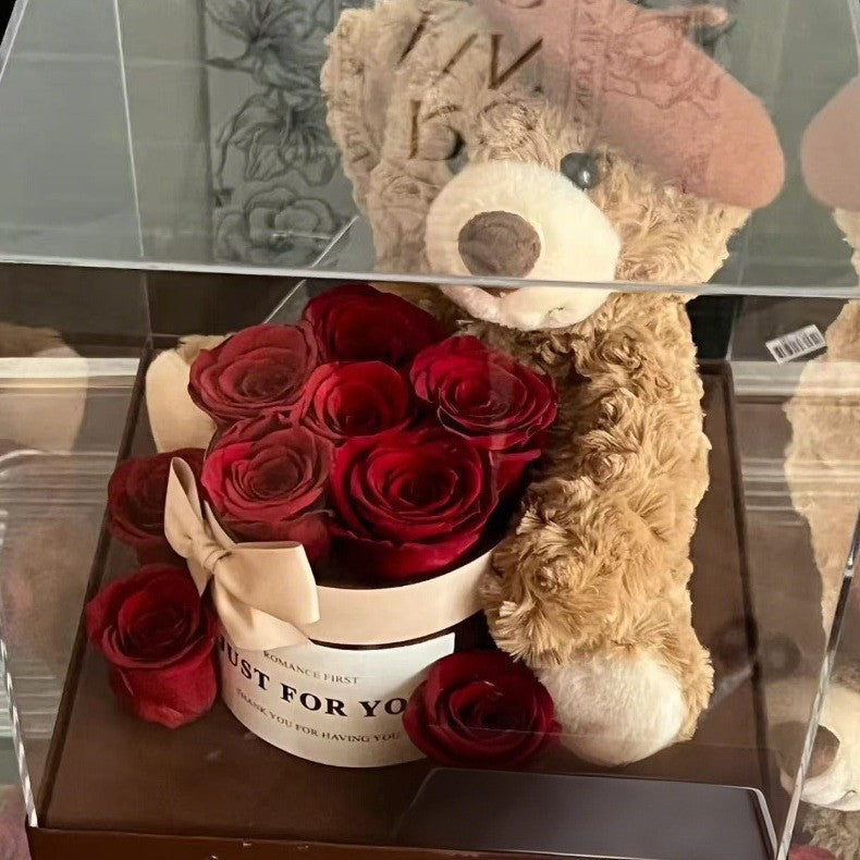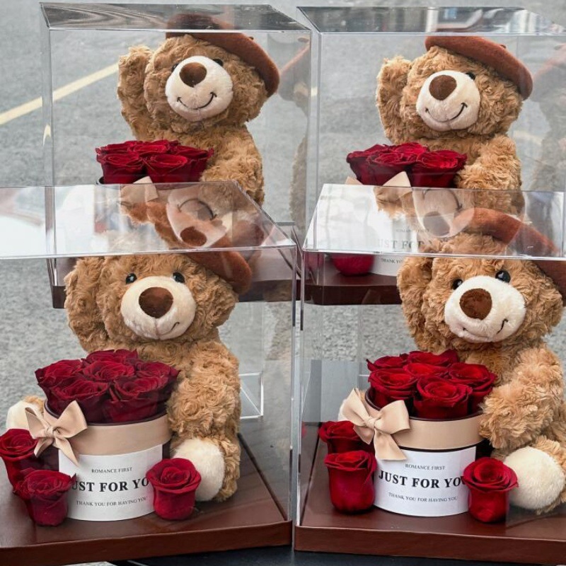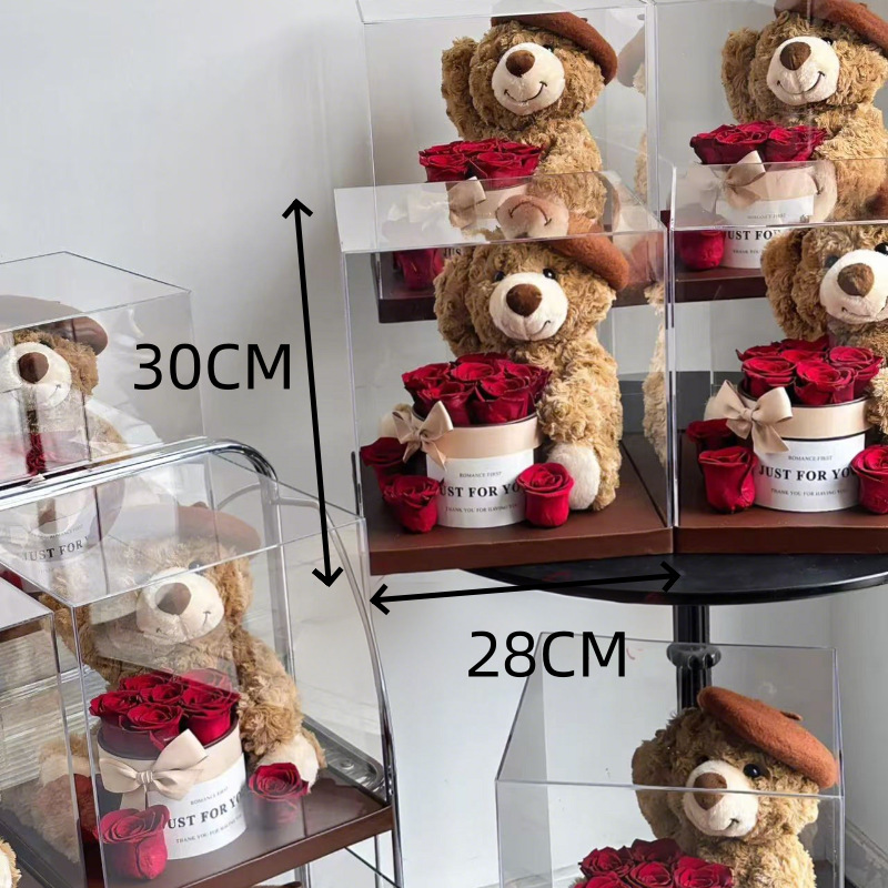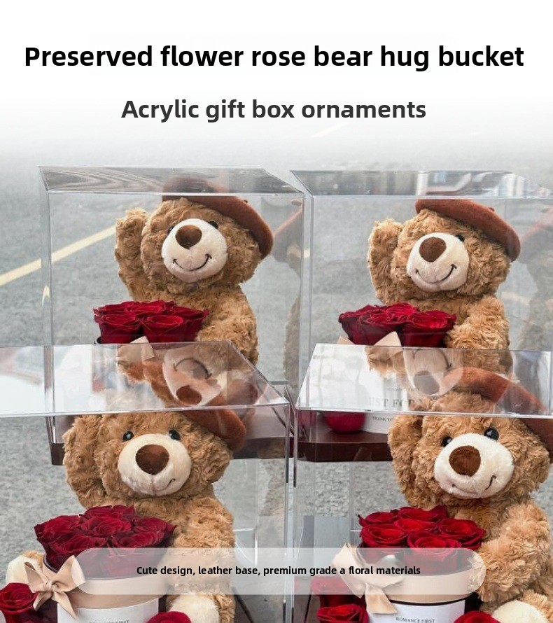 Beret cute bear immortality flower rose hug bucket gift box acrylic ornament for girlfriend Valentine's Day